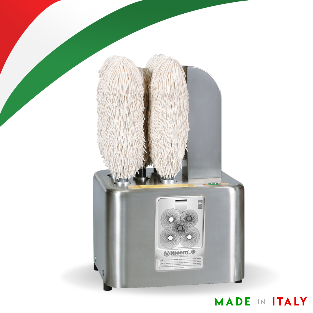 Máquina para secagem e polimento de copos e similares após a lavagem. A ação rotativa das escovas garante copos uniformemente brilhantes e livres de manchas de calcário.