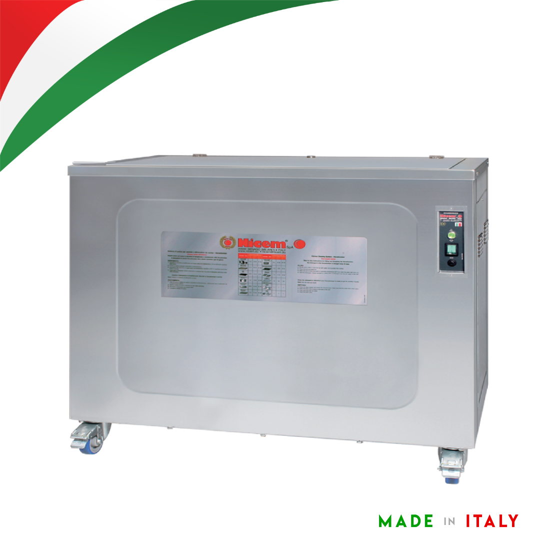 Máquinas para desincrustação de equipamentos de cozinha em aço e alumínio. Remove facilmente a sujeira incrustada e resíduos de gordura.