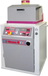 Compacta e eficiente, a prensa oferece alta força de fechamento, acabamento uniforme e baixo nível de ruído, tornando-se perfeita para processos de vulcanização precisos e repetíveis.