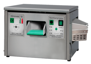 O carregamento lateral facilita o uso, enquanto o granulado totalmente natural, combinado com vibração e calor, absorve a água e lustra os talheres em apenas 30 segundos sem danificar a superfície. Além disso, a lâmpada UV reduz a carga bacteriana, tornando a higienização ainda mais completa. A máquina acompanha caixa coletora de talheres e é equipada com placa eletrônica para funcionamento seguro e confiável.