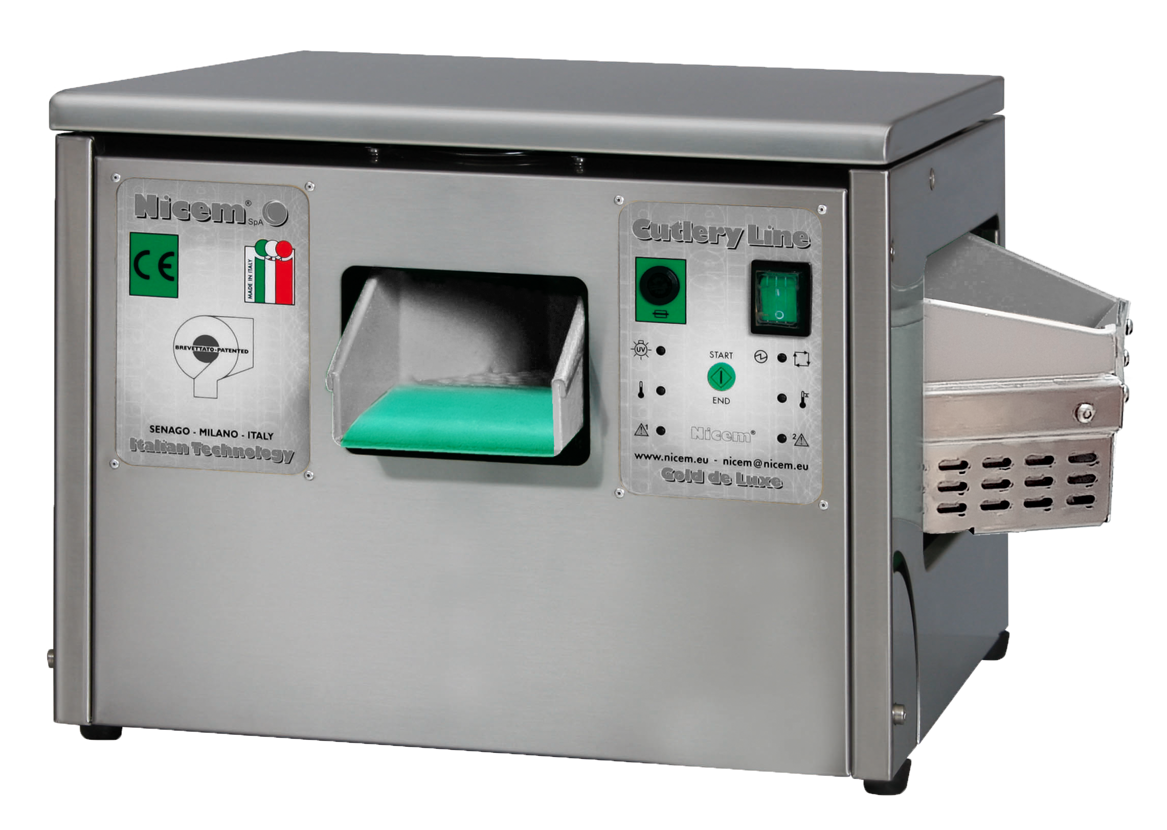Graças às dimensões compactas, à boca de carga lateral e à saída frontal a Seca Talheres 10 Mini é compacta e eficiente, ideal para bares, pubs e pequenas cozinhas. Com estrutura em aço inox e tanque circular vibrante em plástico, seca e pole talheres de aço inox e prata rapidamente, eliminando manchas de calcário e garantindo brilho uniforme.