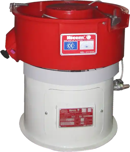 Equipada com moto-vibrador de pesos excêntricos ajustáveis, permite adaptar a vibração conforme o tipo de peça e acabamento desejado. O sistema inclui ainda canal de lavagem e enxágue das peças e torneira para descarga de água, garantindo maior limpeza e facilidade de manutenção.