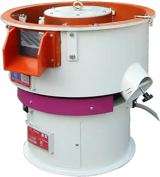Vibrador para acabamento superficial possui tanque metálico revestido em poliuretano, garantindo alta resistência à abrasão e aos óleos. Conta com grade de separação integrada (metal ou PVC), rampa de elevação e sistema de descarga rápida, proporcionando mais eficiência no manuseio das peças.